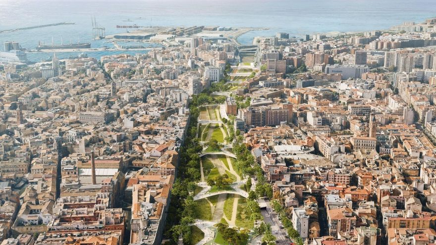 LITOGRAFIA DE P POYATOS SEGUN UN DIBUJO DE A .CHAMAN EN LA QUE SE APRECIA LA ALAMEDA CON PUERTA DEL MAR.