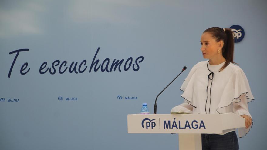 El trono ha sido realizado en madera caoba y barnizada. Se basa en la típica estructura de trono malagueño “de carrete”. La carpintería corresponde a Juan Antonio García Casas, la talla a Julián Sánchez Medina (2005) según diseño de Antonio Joaquín Dubé de Luque y los trabajos de relieve y esculturas al imaginero José María Leal Bernáldez (2010-2011)